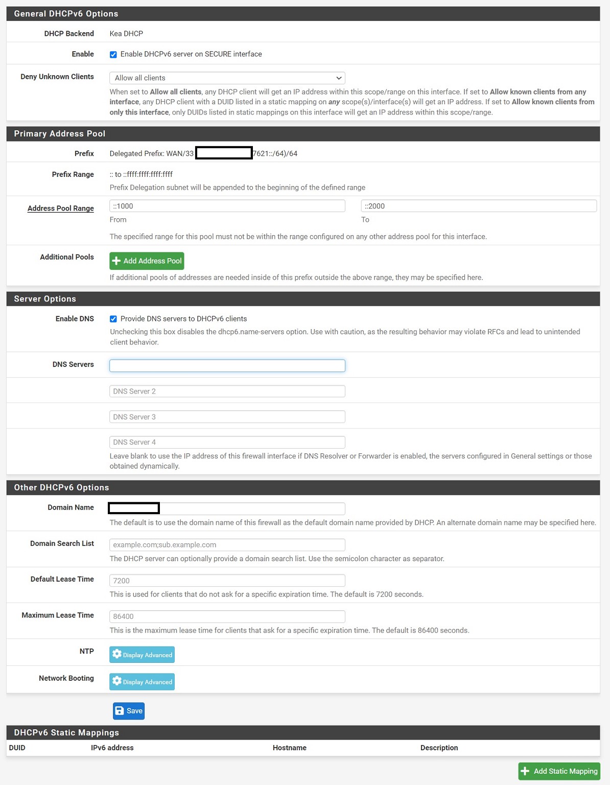 And I have tried a number of different LAN configurations, but currently I have my RA set to Managed mode and my DHCPV6 server configured correctly AFAIK