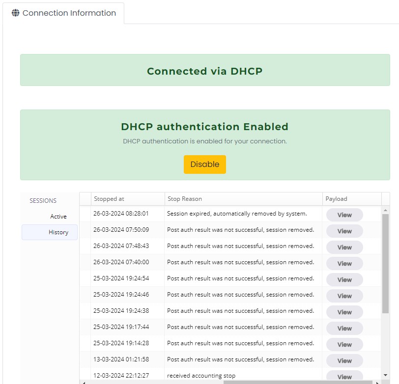 Just had a 15min outage on DHCP with multiple error messages "post auth result was not successful, session removed" on the Quic protal. Then it started working again. Nothing has changed at our end and the system has been happily running on DHCP since the functionality was publicly enabled over was made (openWRT on a nanopi).