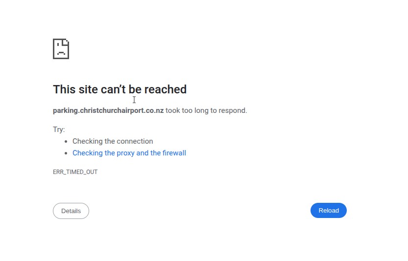 Why can't I access the Christchurch Airport Parkign website on my Quic connection?