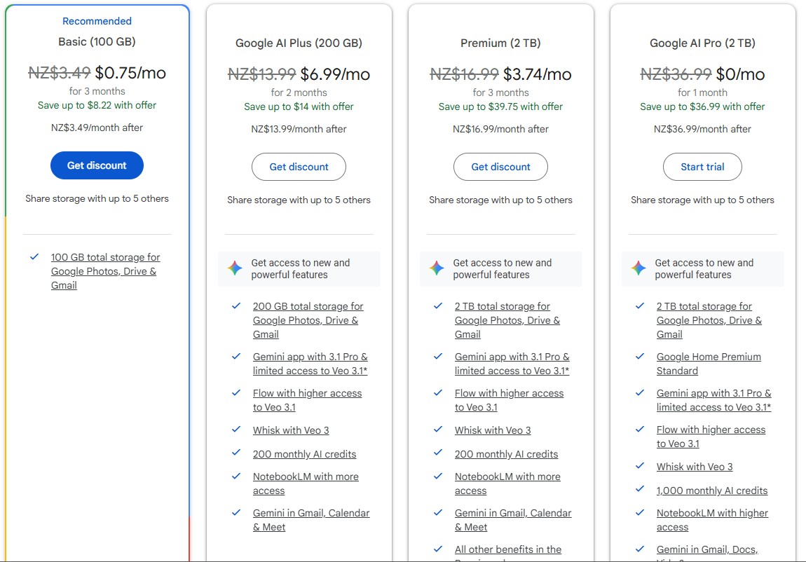 My question is, is it normal for different accounts to be made different offers? as far as I am aware we would be best for my account to be the subscribing account as we are keen on the 200GB option, and if I take that I get the AI features, where as if my wife subscribes to that same plan she does not get the AI features. As far as I am aware I can share the space with her which should solve her capacity issues (if I figure out how to share the space with her).