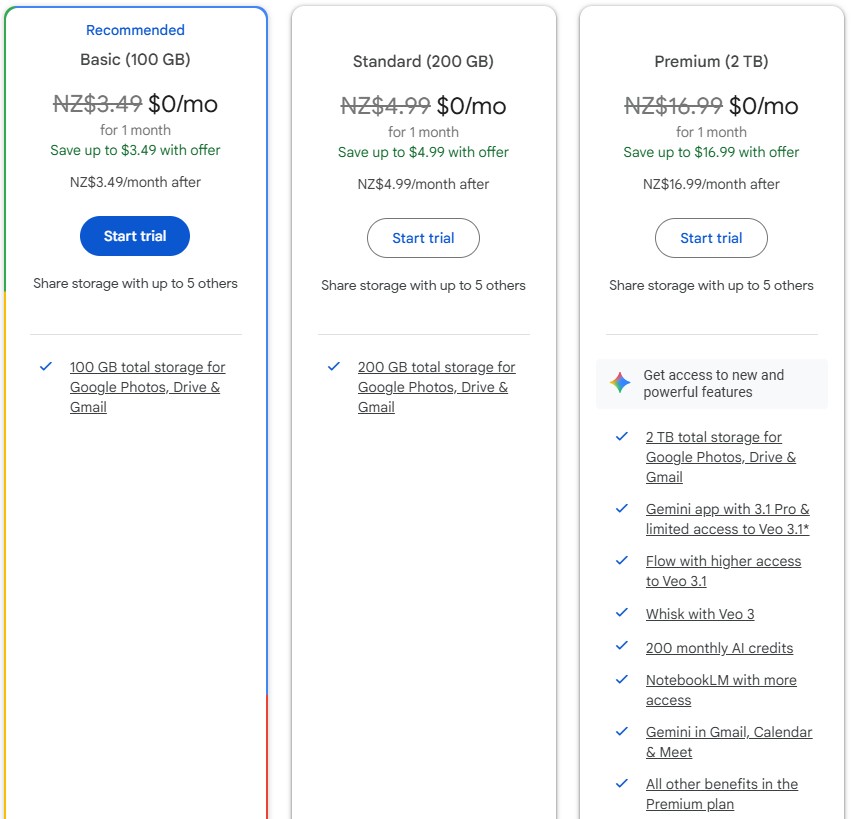My wife is wanted to pay a subscriptions to google for extra space as Google Photos backs up her photos (in space saver mode) and she has used her 15GB allowance. I was looking at plans available to her and there was three options, and only the most expensive option included the AI benefits. We were tempted to take the premium option which is 2TB of space and the AI benefits. The middle plan is 200GB and no AI features.