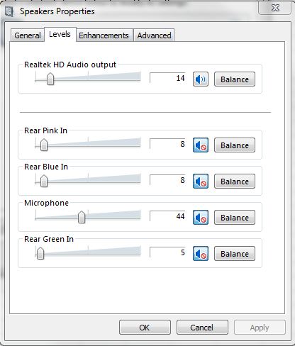 I had a search but cannot find any way to change the line in volume in Windows 7. The STB volume is set to max. The volume is also a lot quieter different between the input from the STB to the AV and the input from STB - MC - AV.