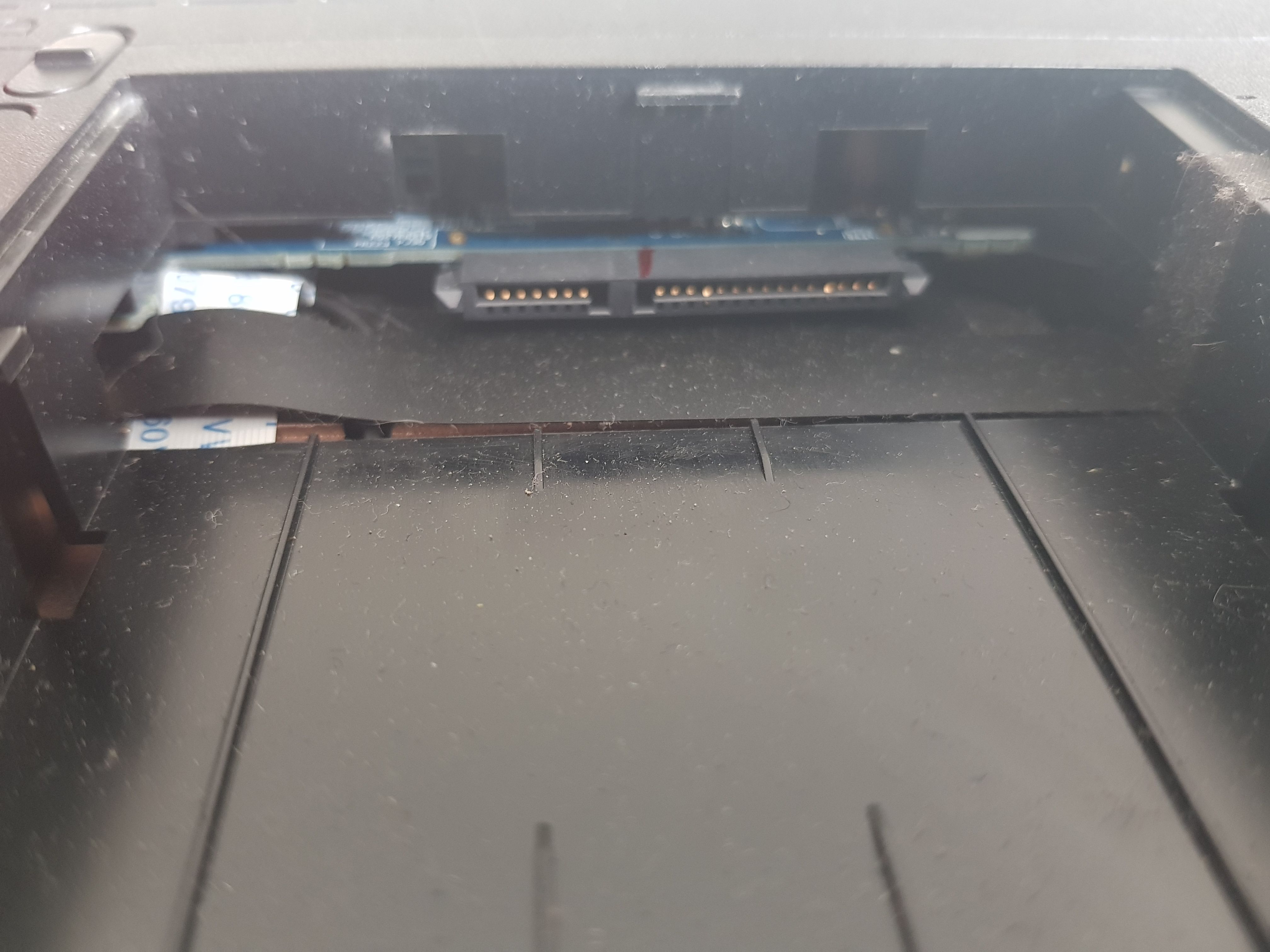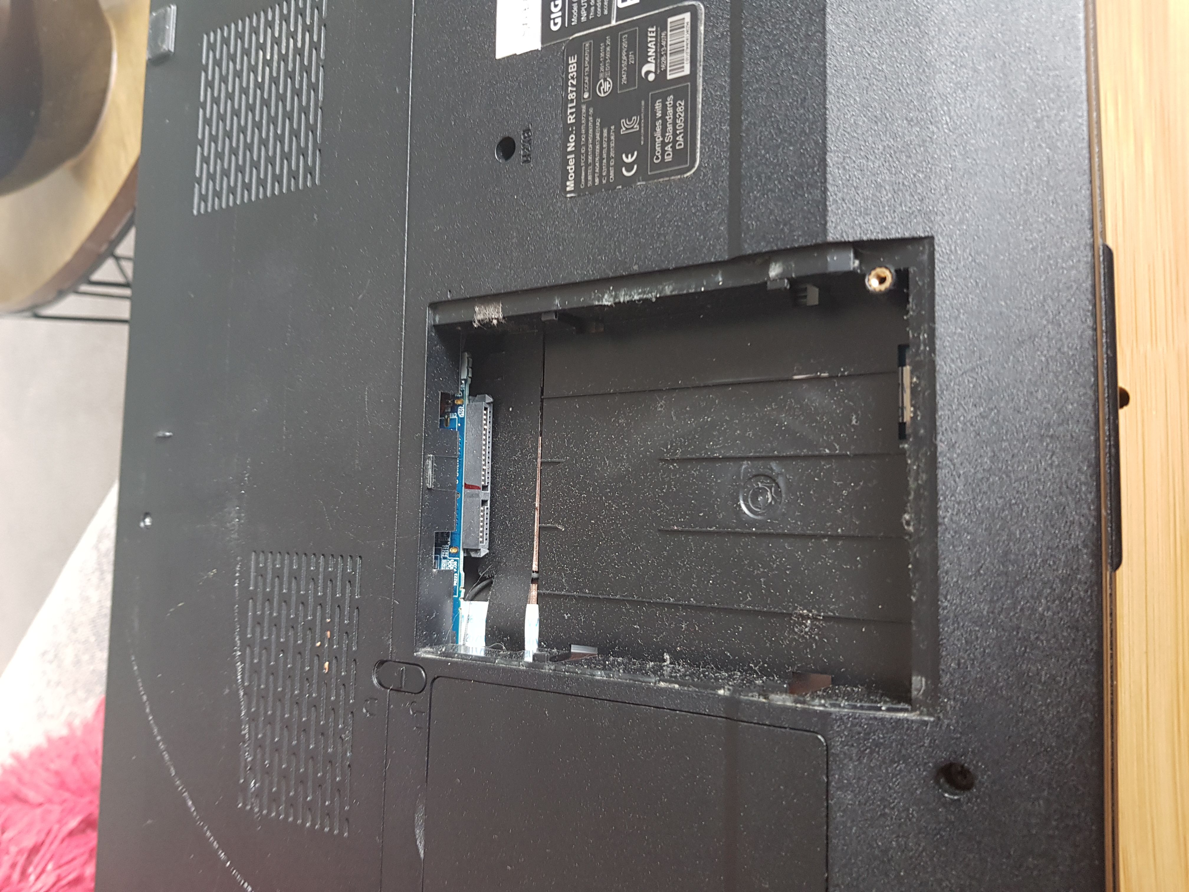 It appears to be missing the cradle. I'm guessing it came from the factory as standard with a M2/MSATA SSD, so they didn't ship it with the cradle. You'll need to find a way of keeping the SSD in place (probably sellotape and some foam cutouts).