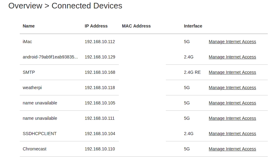 2/ Pitty it doesn't seem to allow you to label 'unknown' devices (using the unique MAC address). See attached screen grab. All the 'unknown' devices are named in the actual device so not sure why it is not passed back to the modem, but I seem to recall the HG659b allowed you to edit and name them. Makes it easy trying to trace which device is which.