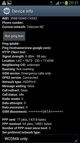 Progress, come up with Telecom NZ network in that *#*#4636#*#* network diagnostics. 35810040174343 / 02 imei. still emergency calls. Any way to receive the message and calls through the mobile data entry ?