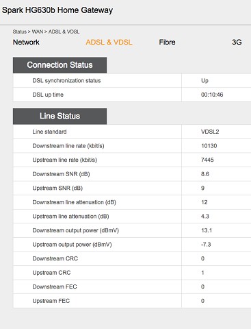 Another thought (but it seems unlikely, as the sync stats shouldn't be affected by this) is that I'm actually using the modem in bridged mode, with my ASUS router. If Spark & Chorus come up with nothing, I may try taking the router out of the equation and using the Huawei only (although the kids will scream blue murder, as that has far inferior wifi reach).