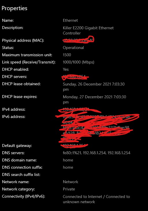 Can you please also go into Network and Internet settings / Change Adapter Options, and then right click on your LAN connection and select Properties (assuming you're using Windows). Can you advise what the 'Speed' is on that screen?