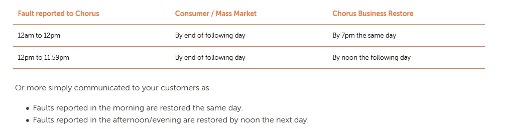 Chorus offer an enhanced SLA on all business and small business plans and that option is available to every RSP for only a few dollars more per month for a small business plan vs a mass market residential plan. Like many things in life it's the simple reality for anybody that if something is critical then you need to ensure you're on the most appropriate plan for your requirements.