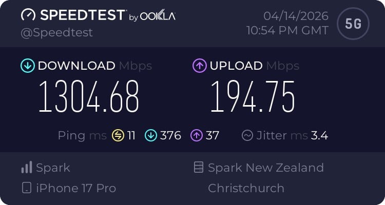 I’m still not going to be happy until I see 5G all over Wellington so we can all bathe in the goodness that cures every known illness to man and allows me to download a Microsoft Office ISO in mere seconds but hey this is a start. It hasn’t gone unnoticed.