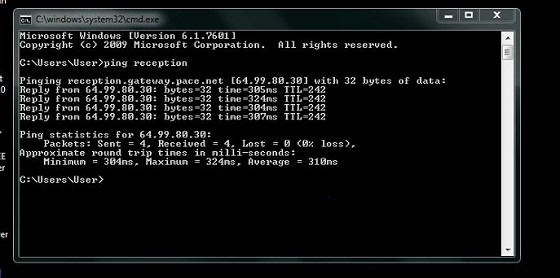 I tried to ping the "server" machine using its netbios name "Reception" and ping returned the Pace's IP address not the pc address.