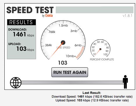UPDATE: Just tried another speed test as follows: