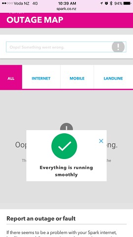 littleheaven: Mine too - NZ sites loading fine, but nothing else. The Spark faults line is engaged and status map shows no issues. I'm 50th in online chat queue and have been for the last 10 minutes.