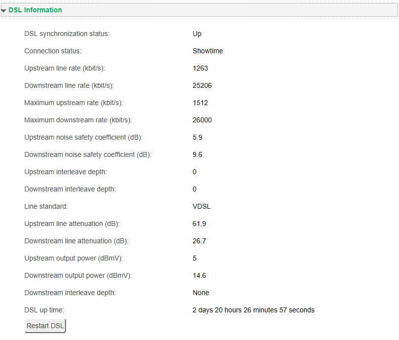The VDSL was connected and right from the start I had issues. I've worked hard to confirm it is not internal wiring and have got to the point of rationalizing it right down to the basics.