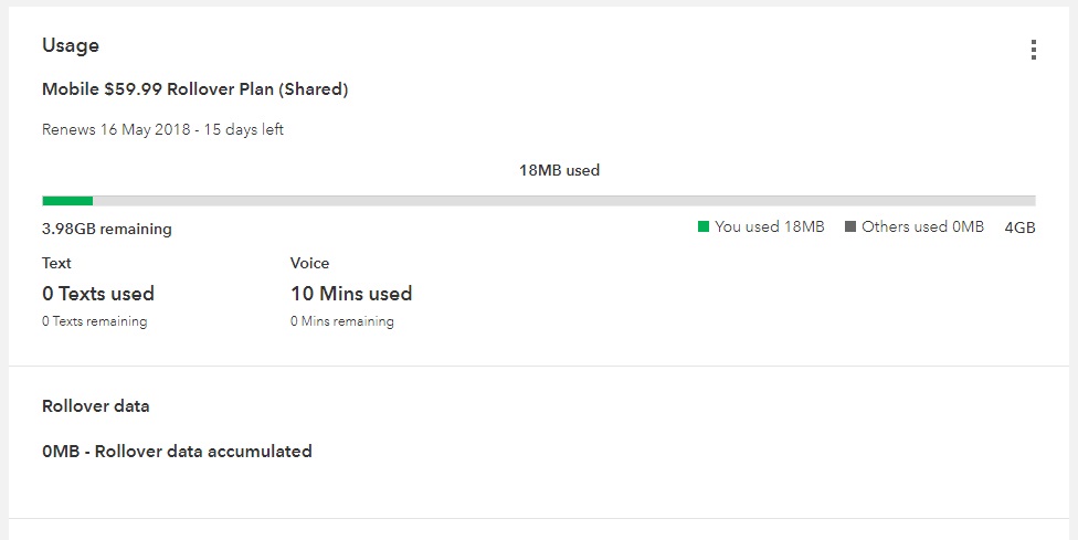 A query before sending in-laws to Spark help desk... Mobile account with 4GB and rollover option, very low usage (lowest 15MB/month, highest 175MB/month) and yet there's no accumulated rollover balance?