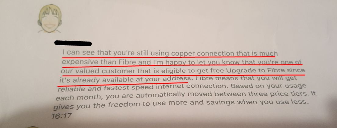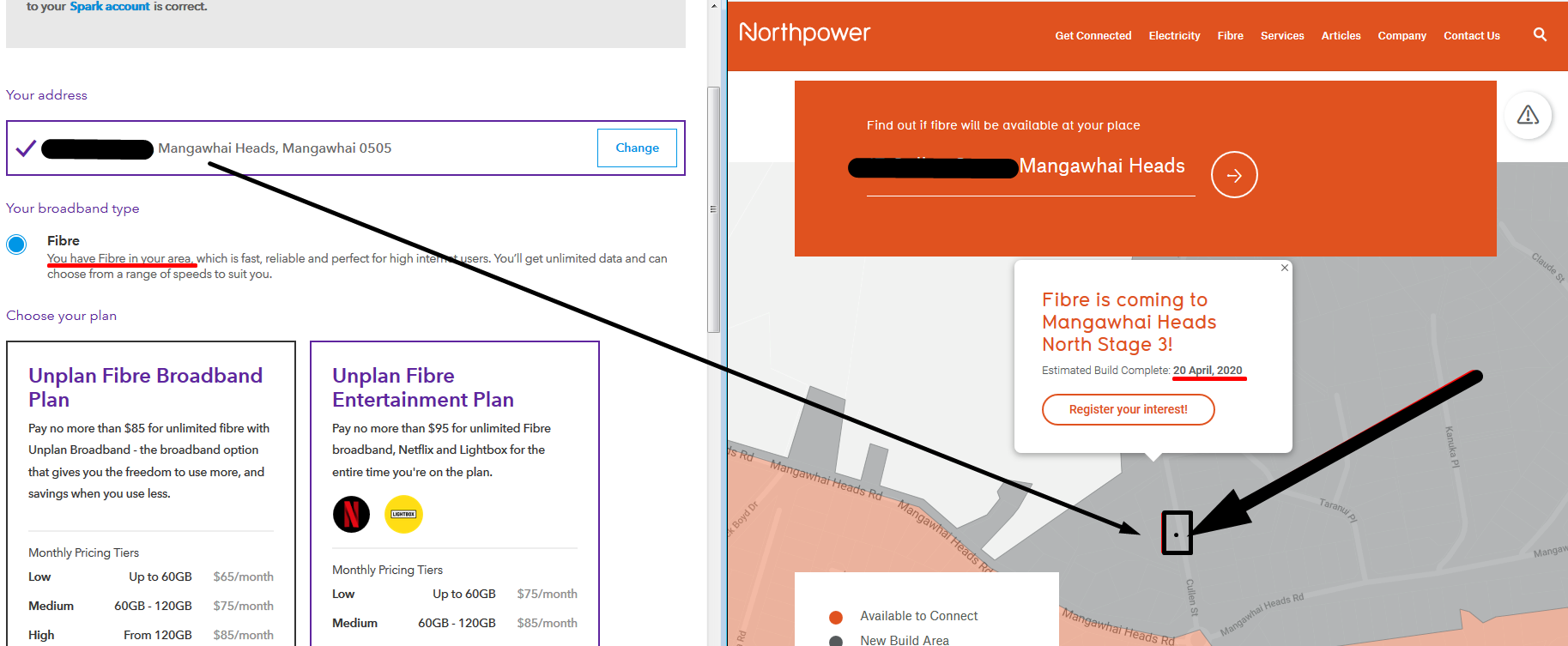 The transcript below was given to me by a client, looks like the reps use Spark's availability checker for NorthPower areas. Clients house is shown on map.