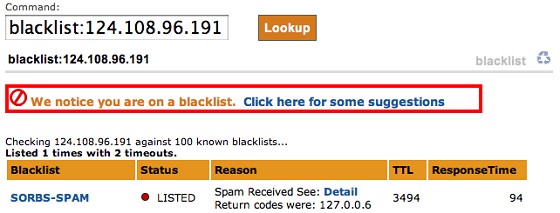 I wouldn't go so far as to infer people using SORBS are insane, considering they weren't listed there yesterday. Or the day before.