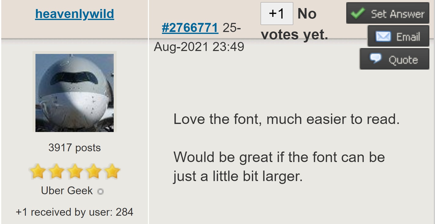 How feasible would it be to have this as a user-customisable setting? I'm sure there are a lot of people who'd like to keep the larger font, but personally it just feels like a heap of extra scrolling or zooming my browser out when I browse GZ lol.