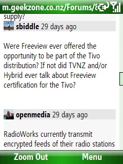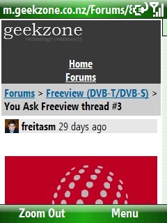 freitasm: And here is more evidence of RedJungle hard work... The first Geekzone Mobile screenshots, taken from my Windows Mobile Smartphone: