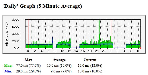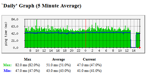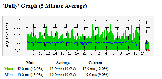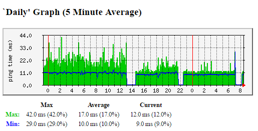 As you can see from the graphs (ping to vodafone DNS servers) both min/max latency is vastly improved just after the outage.