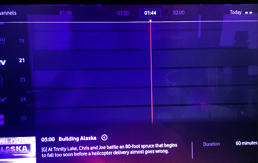 Pressing the button next to ok, it actually either jumps a few days ahead or goes backwards. It has program name at bottom, but the grid itself is blank so can't go find catch up stuff to watch, it's blank even when move to different times in grid when shorter programs on.
