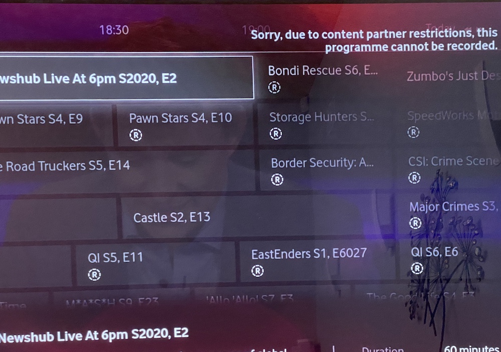 One year ago, on 1 January 2019, the ability to record NewsHub Live (3 News) stopped. It was not due to a restriction by NewsHub (I asked them). It took about 10 days for the problem to be fixed by Vodafone.