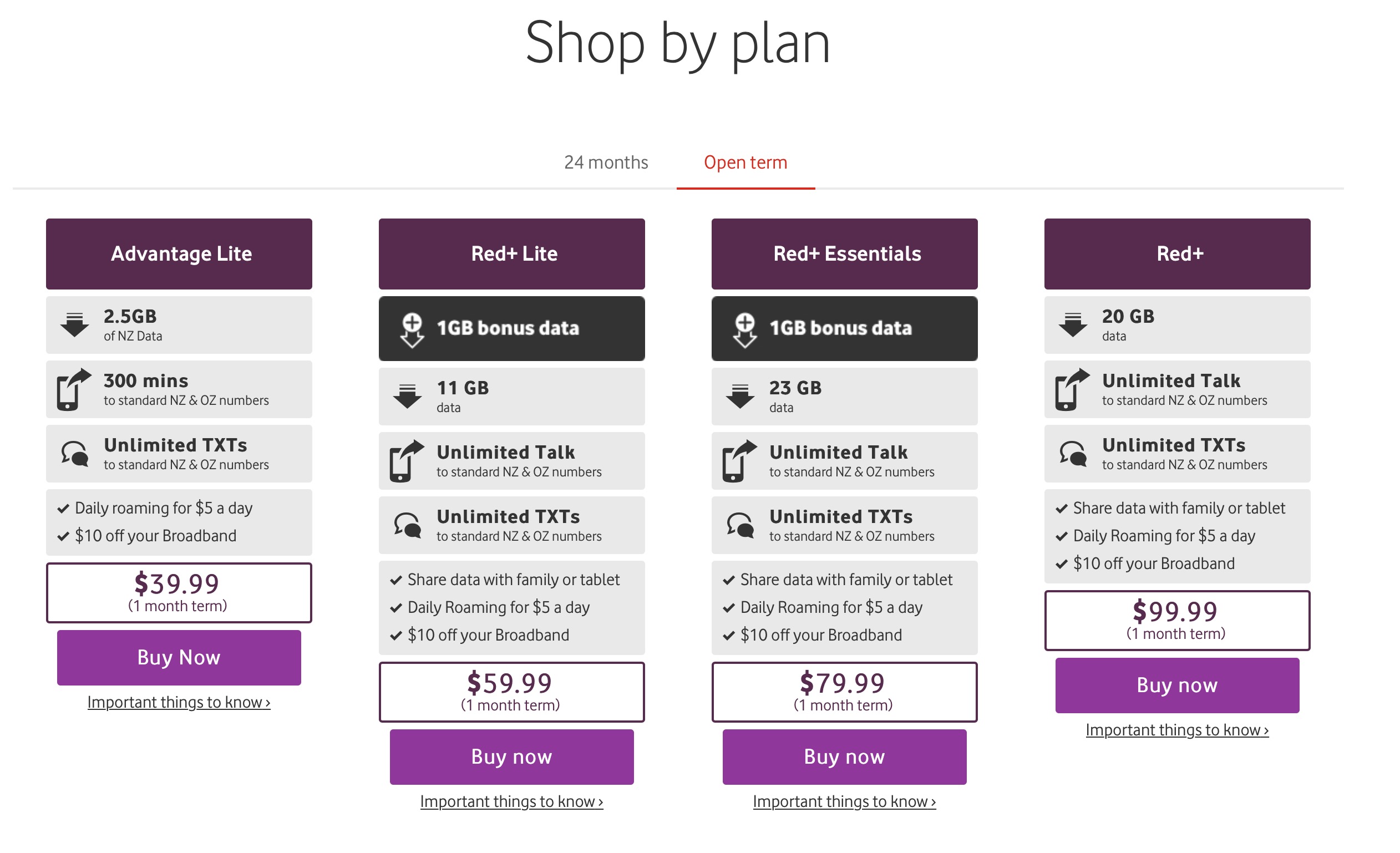 It looks like Vodafone have finally moved to catch up with the competition. Their web site is now showing these open term plans: