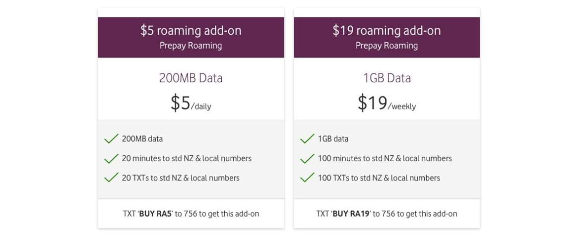 Looks like vodafone has new prepaid roaming options not as good as spark however.