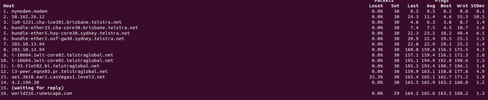 So, about two days ago latency to Australian Oldschool Runescape servers jumped from my usual ~30 to 160. Doing a tracert showed that it's routing it to the US West coast.