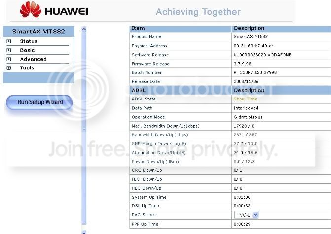 Sorry for such a long post and we’re not there yet. My daughter has already told me off for writing a novel but the forum guides do say to give as much info as possible so here are the stats from my modem web configuration page: