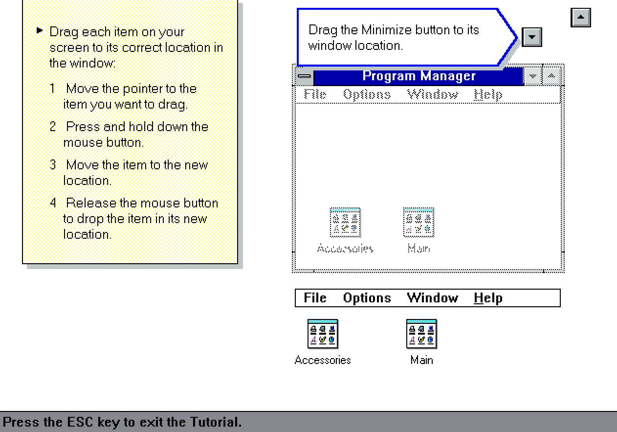 I've been playing around with Virtualbox and after installing Dos and Windows 3.11, had a try at the mouse tutorial. It's actually a very good & intuitive tutorial. In the screenshot I will try to upload it shows dragging things such as the maximise button back to its right place and so on. I came from an Amiga 500 to Windows 3.11 so I didn't need this back in the day! I'd say that Microsoft put a heck of a lot of effort into those Win 3.x tutorials as it was so important to get it right.