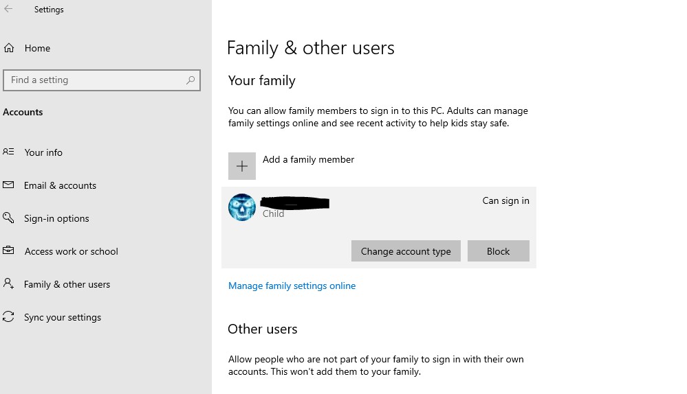So the problem is I have got an old laptop (HP Elite Book with Win 10 Pro 64 Bit) that I want kids to be able to use. I have set up Microsoft Family and added an account. It sends an email to my daughter and she has accepted and Joined the family. I can see her account in the User settimgs on the laptop and also in the MS Family online. This is what it looks like:
