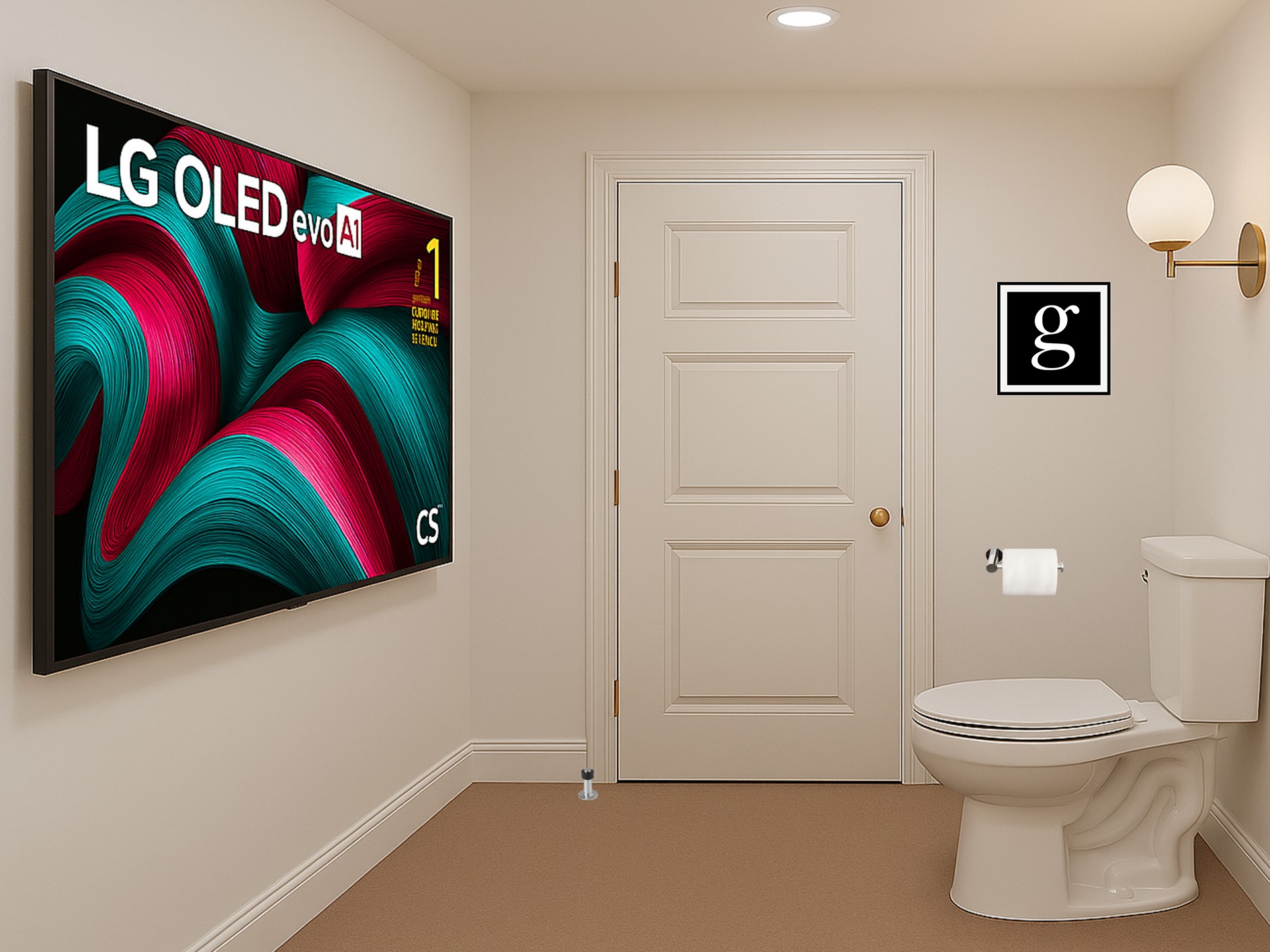 A chatgpt render inspired by recent article about americans spending a lot of time on mobile devices on the toilet. Thought a more sanitary option would be having a tv in the toilet lol. Would I put one there. Probably not. Think it would just be wall mounted in the room