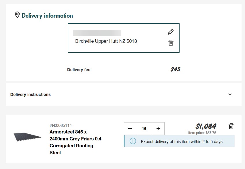 This makes it even more illogical, $45 delivery for 16 sheets of roofing.