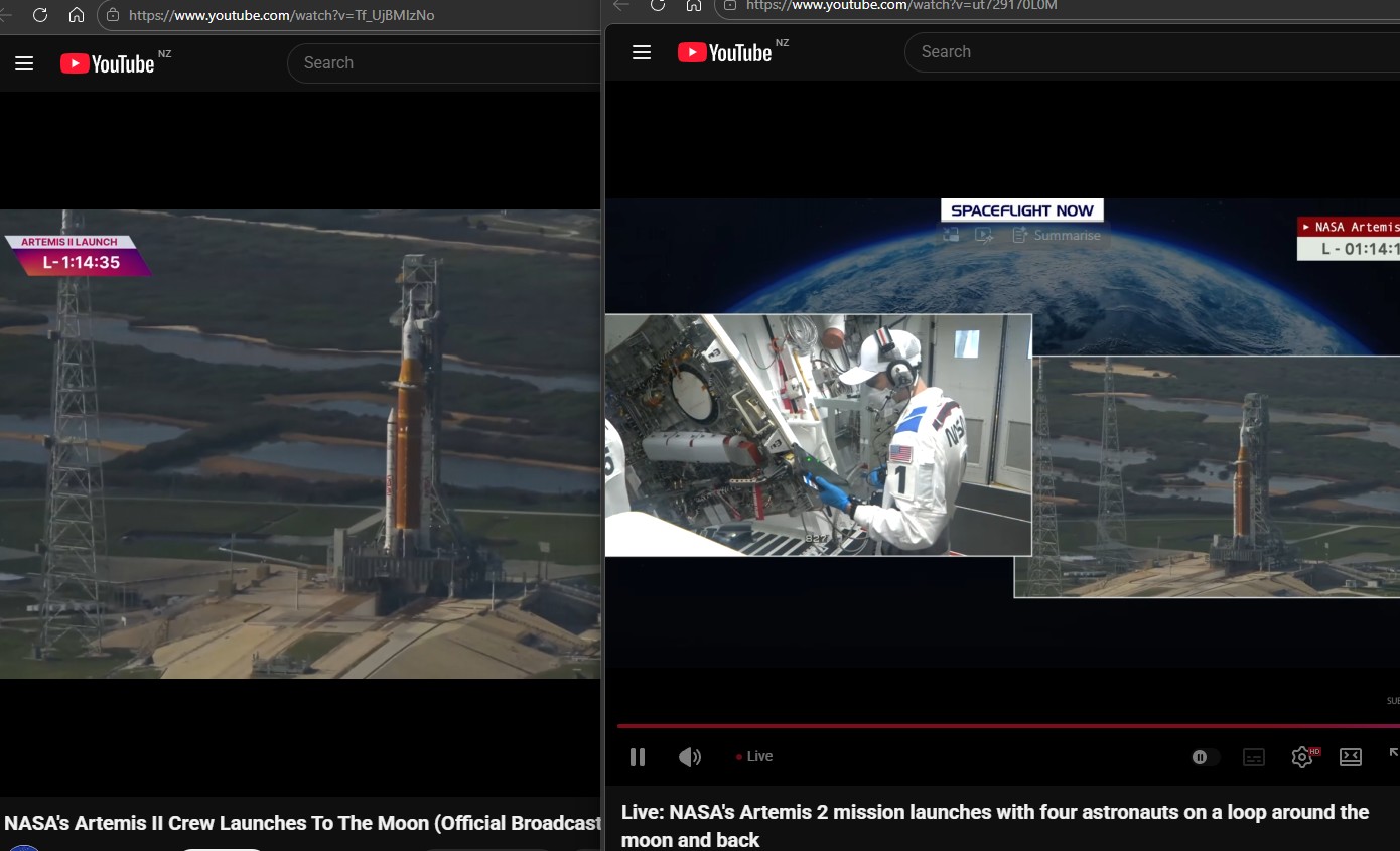 SFN's feed seems to be showing more action of the crew... and the Nasa feed seems a good 30 seconds behind the other. Not to be nitpicky or anything, but you asked