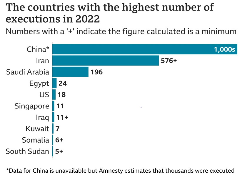 Its a bit of a list but Japan is nowhere near the top for actually execution of sentences.