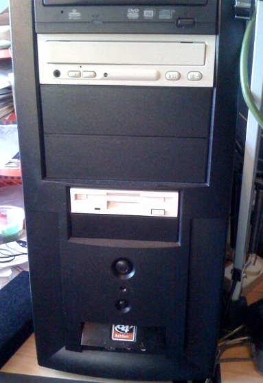 This is my HP computer doing double duty as a phone stand. I would love to have a server so that we can connect all of our portable drives to the server and then access them all through the home network. My husband uses the main computer (most of the time) for his writing and artwork, as well as email. I use the main computer when he's not using it, and the rest of the time I have a small laptop (bigger than a netbook, but still not powerful enough to run Adobe Creative Suite).