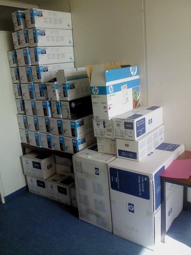 neb:geoffwnz:That seems like a great idea, having worked at places where people print tens of thousands of pages [literally!] of stuff single-sided colour that should be double-sided B&W just because it's the default it's good to see some common sense for once. What situation requires single-sided printing? Is it a law firm? Do they also require blackletter gothic and wax seals? Edited to add: One section of one of the printer rooms, there's one on each floor.