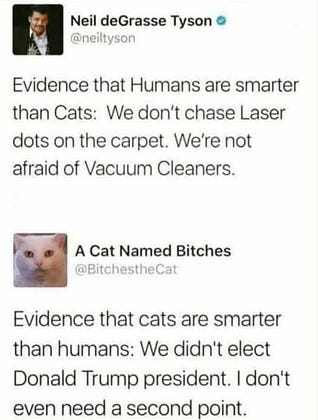 "I’m a fan of Neil deGrasse Tyson’s work, but the cat has a point. 🐈"