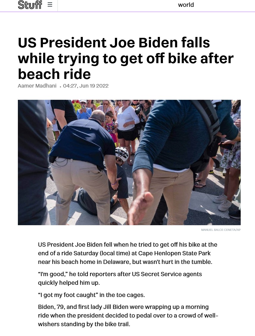 The leader of the free world falls off his bike and could have injured himself. Unfortunately one side will say