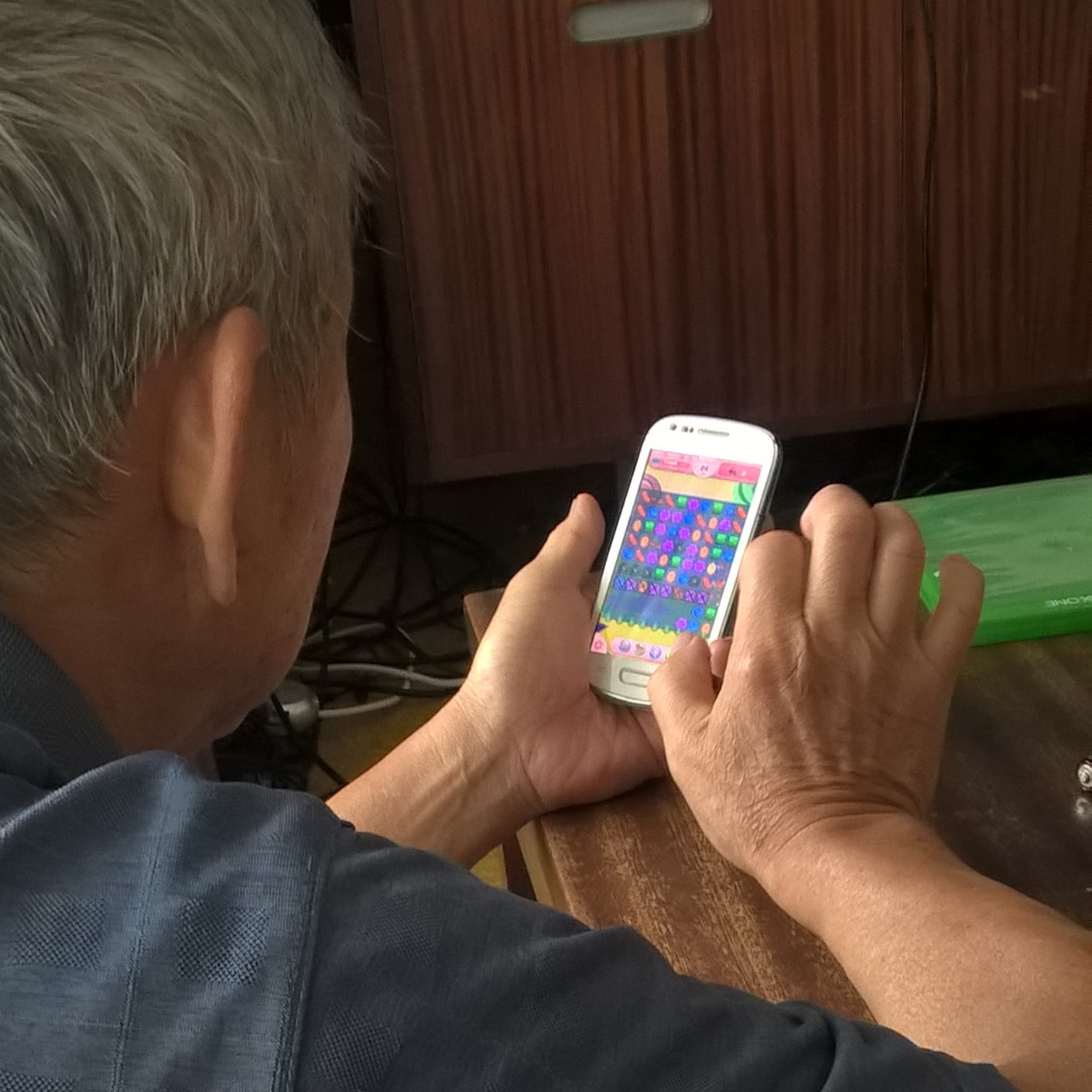 Here's a sneaky shot of my Dad's guilty pleasure, Candy Crush