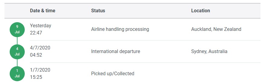 No movement since Monday - according to tracking, the package is still in Auckland.