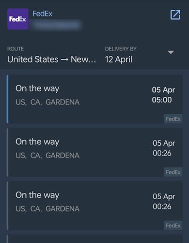 neb:sir1963:Yup. Ordered something from Digikey on Sunday, picked up Monday, delivered Thursday, with detailed tracking and updates every step of the way. Heck, I can't get something from Wellington to here in that time, and when I do the only tracking updates are "Picked up" (which doesn't mean picked up, it means label created), and "On board for delivery", with the rest missing in action.