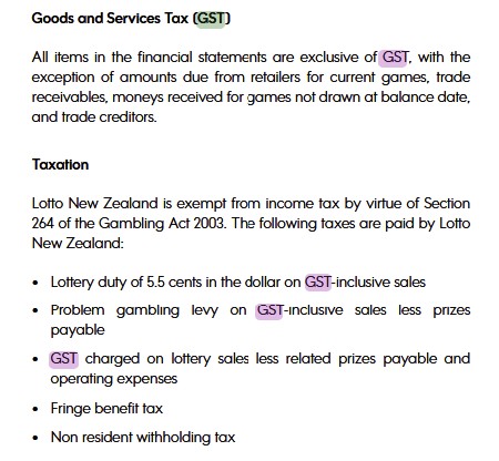 - Instead, Lotto NZ accounts for GST only on the “margin” = ticket sales – prizes paid out.