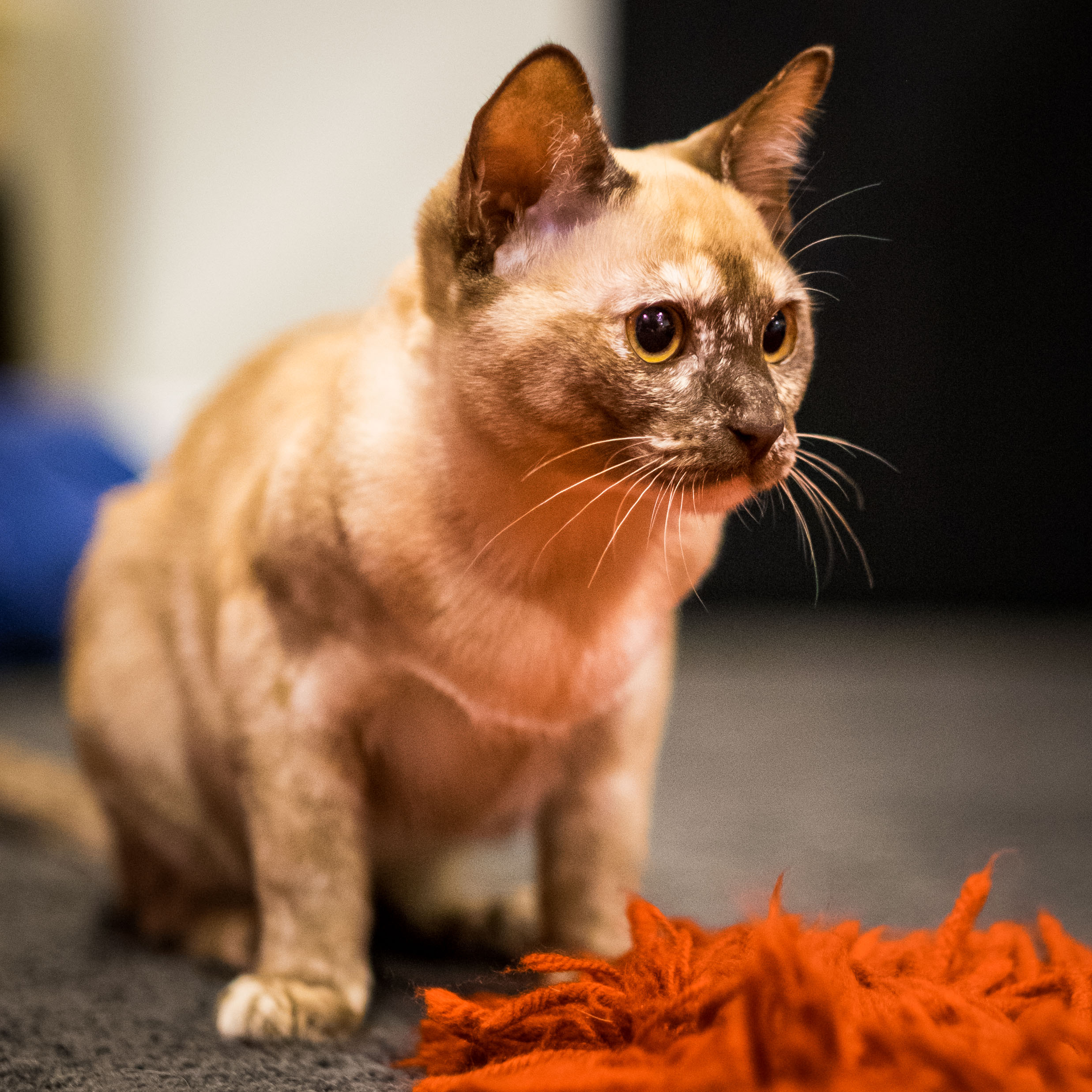 A relatively new little Burmese kitten. I lost my other (best ever) Burmese about 6 months ago and my moggy needed someone to keep him company. This little maniac is pretty hard work though but I'm sure he'll warm up to the new little girl.