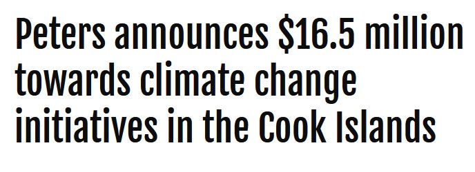 [Winston Peters] met with Cook Islands Prime Minister Mark Brown, where he has promised $16.5 million to mutually-agreed renewable energy projects, cycle shelter upgrades, battery replacements and water security