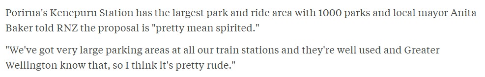 For context, as far as I know and can see Kenepuru station has no Park & Ride facilities at all. (Potentially meaning that Mayor Baker is telling untruths as well.)