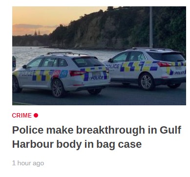 "Police make breakthrough in Gulf Harbour body in bag case" - Newshub.
