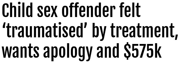 gzt:A child sex offender who says he felt “traumatised” by a rehabilitation programme is taking the attorney-general to court, seeking a written apology and $575,000 in damages.