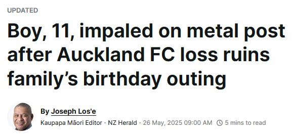 “Boy impaled on metal post after Auckland FC loss, AT “really disappointed”