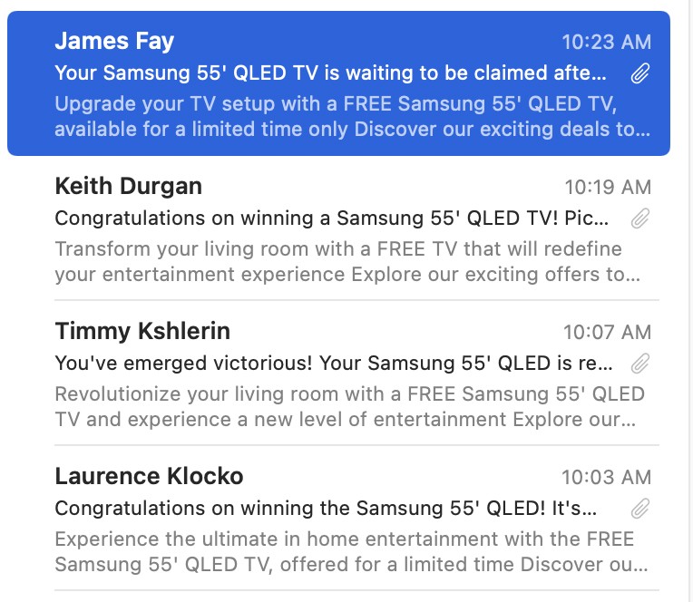 I don't even remember entering these prize draws, but apparently I've won four Samsung 55' TVs! No idea where I'm going to put them though; 55 feet is pretty massive!